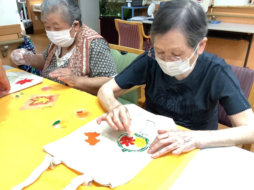 好きな型を選び、布染め用の絵の具で色を付けていきました。