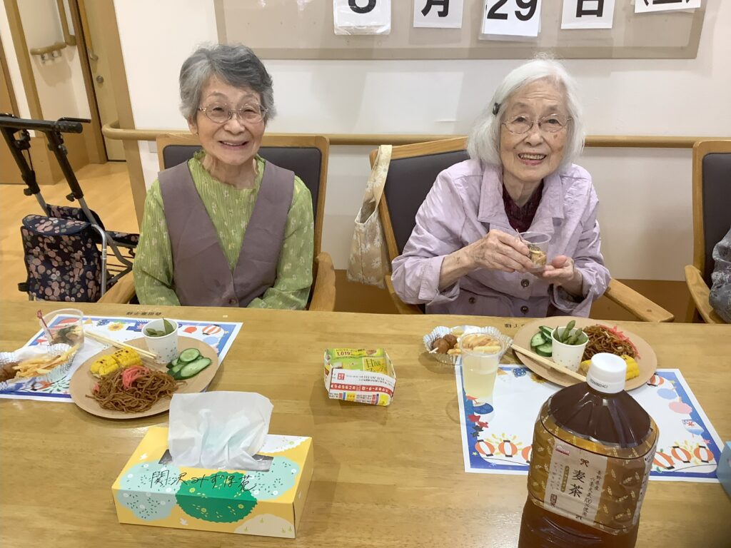 グループホームみずほ苑 縁日🍉1 2025.09.04 縁日を行いました! 食事は焼きそば焼きとうもろこしといった縁日メニューを楽しまれていました。 その後は魚釣りゲーム・的当て・スイカ割りなど行い、笑顔が多く楽しいひとときでした。 敬老会準備 前の記事 縁日🍉2 次の記事