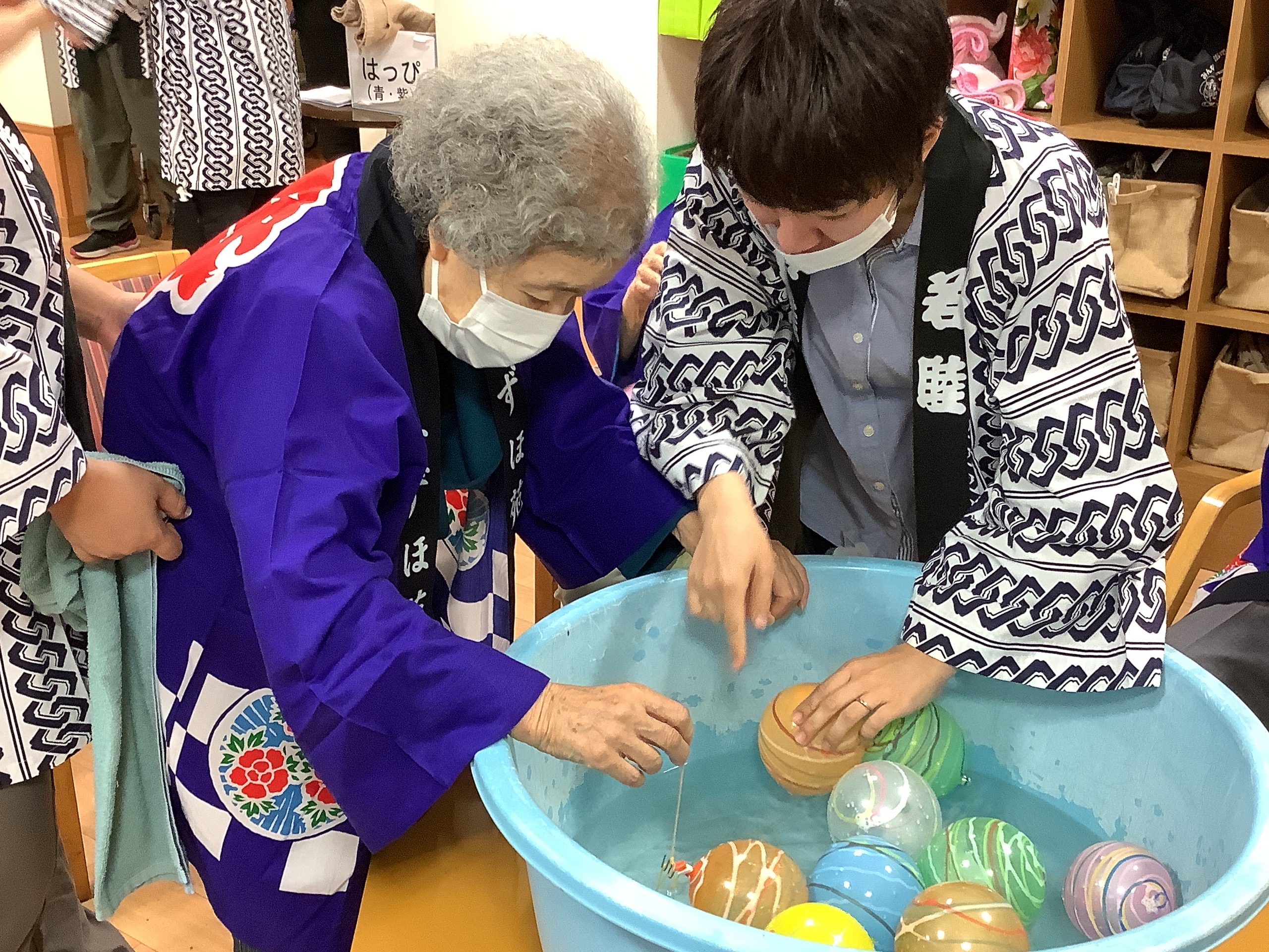 デイサービスセンターみずほ苑 夏まつり 2025.09.05 ☆デイサービス☆ 夏まつりをおこないました。 ヨーヨー釣りやお菓子釣り、盆踊りを踊りました。 「お祭りなんて久しぶり!」と皆さん童心に返って楽しまれ、心に残る夏の一日になりました。 【TikTok】衣類バンクへの取組み 前の記事 ソルトペイント 次の記事
