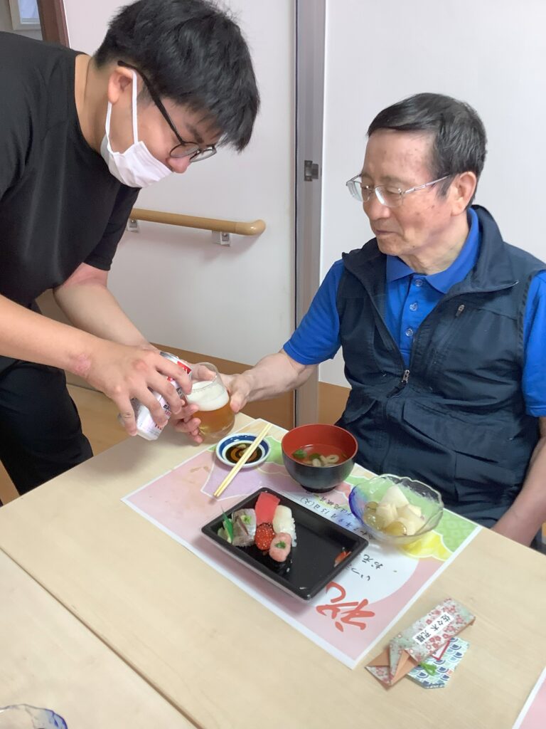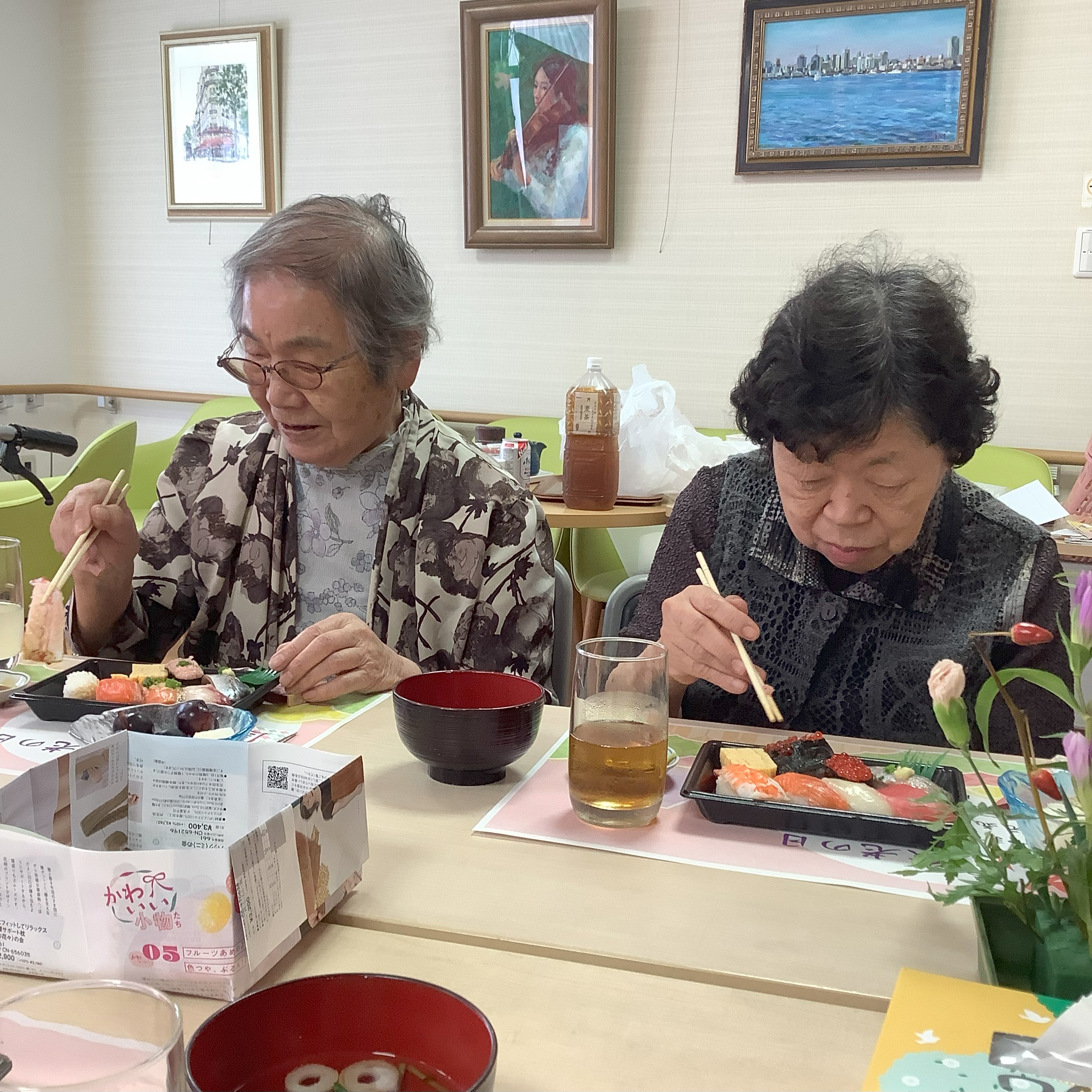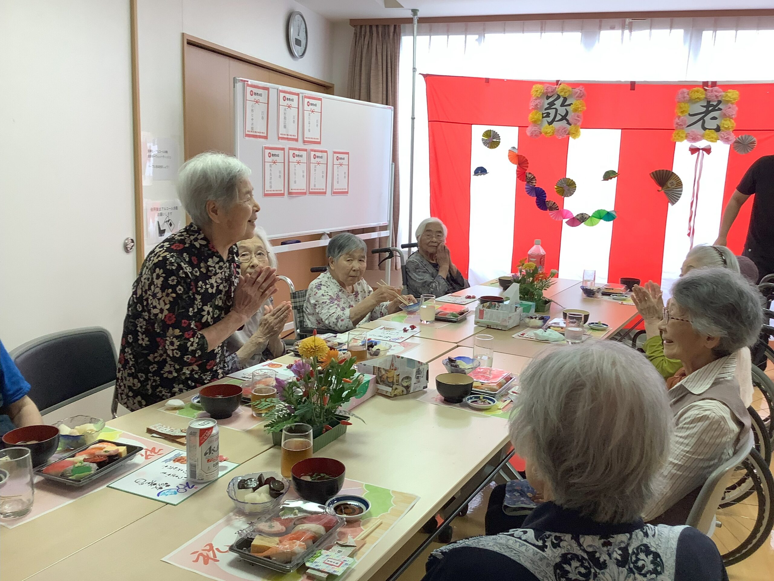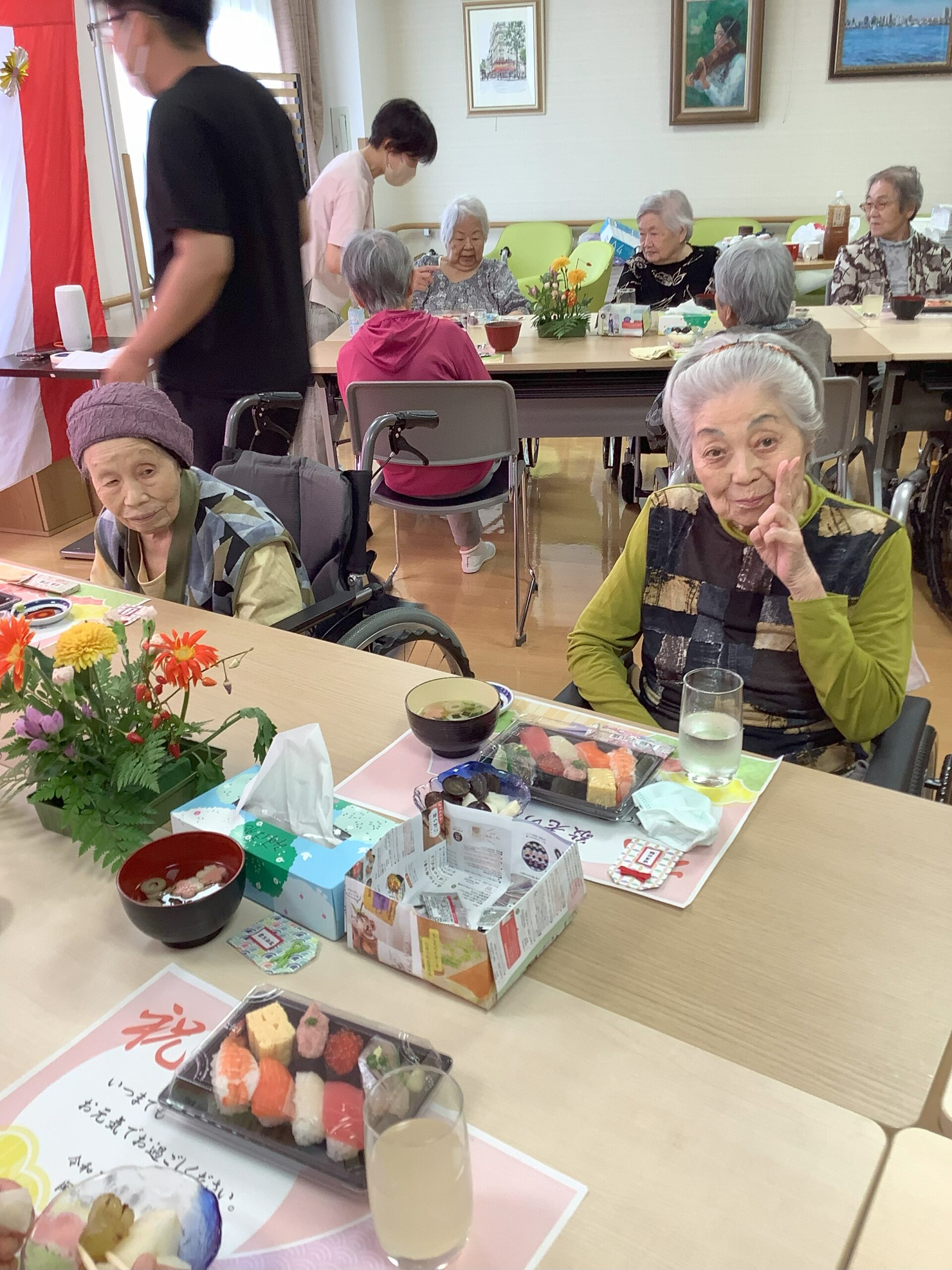 お寿司や職員による歌の出し物など、和やかな雰囲気の中で楽しいひとときを過ごしていただくことができました。