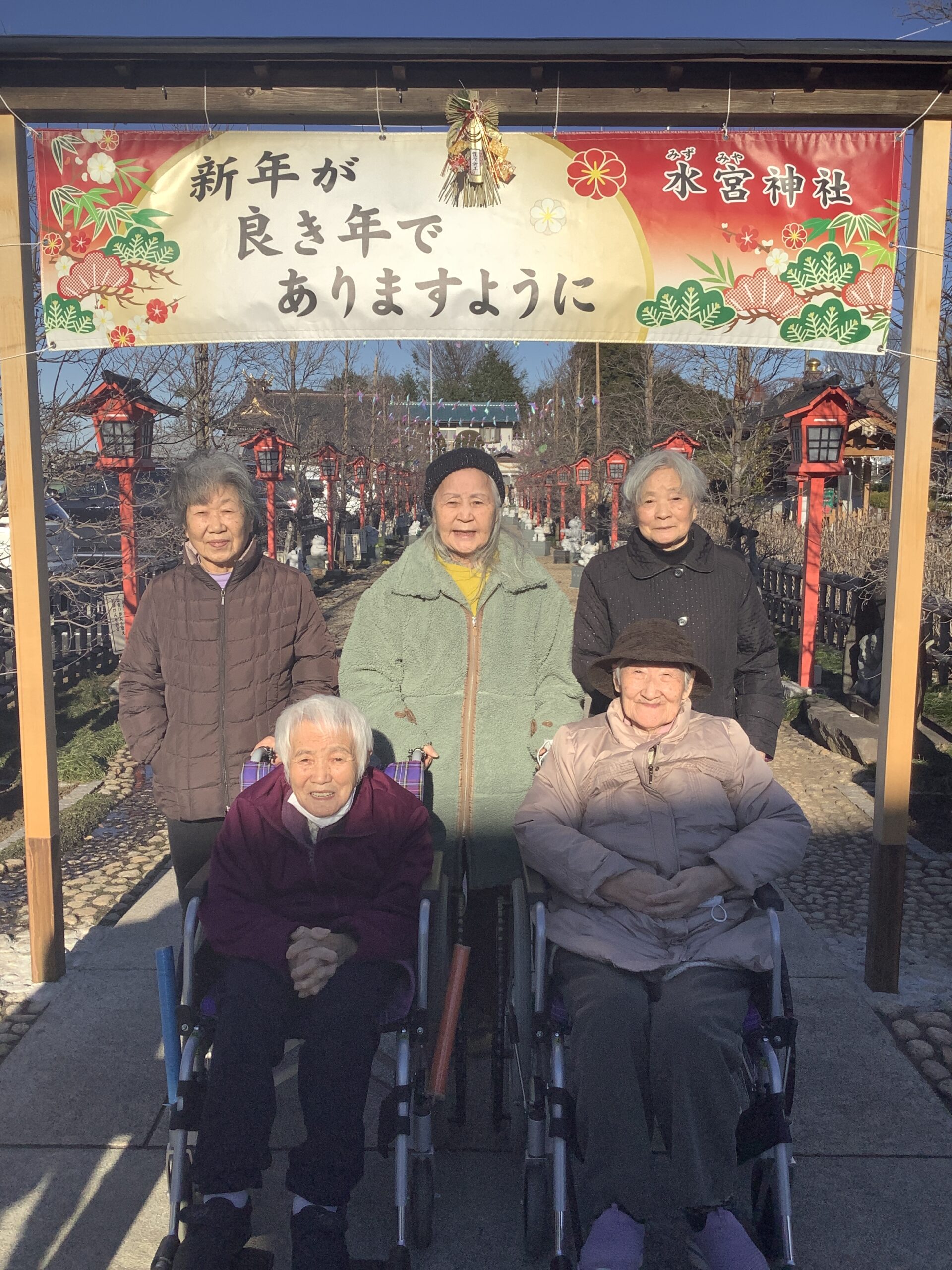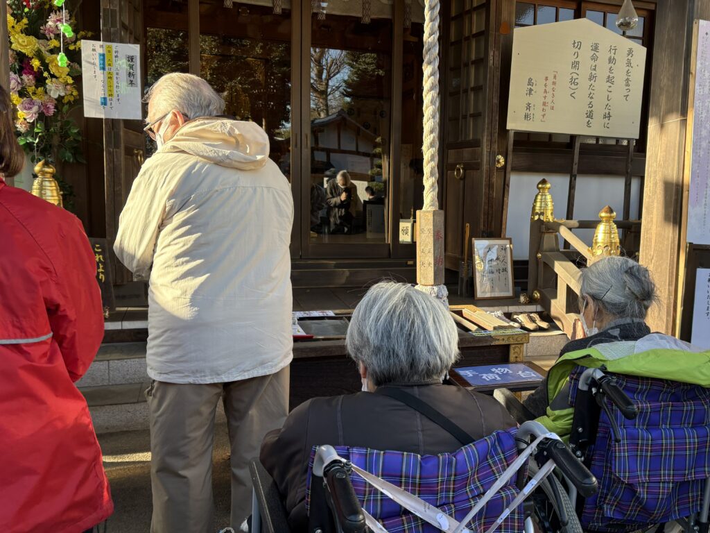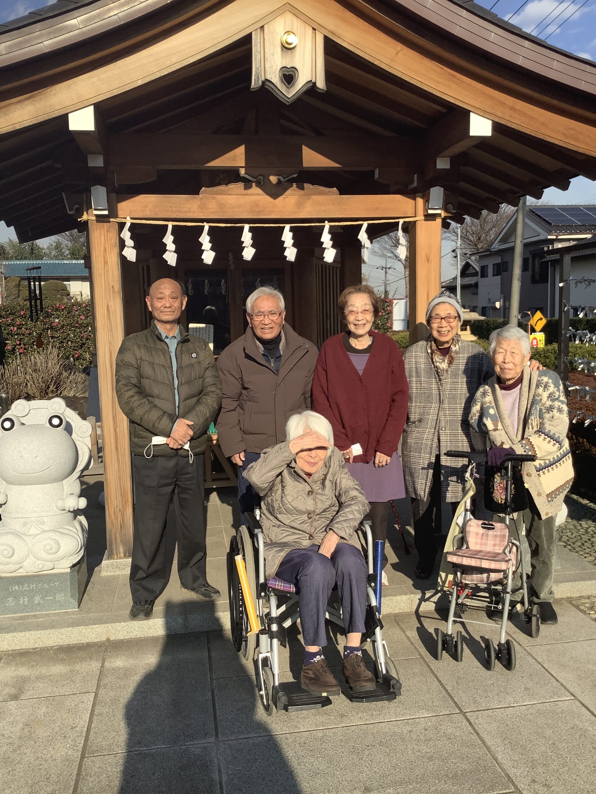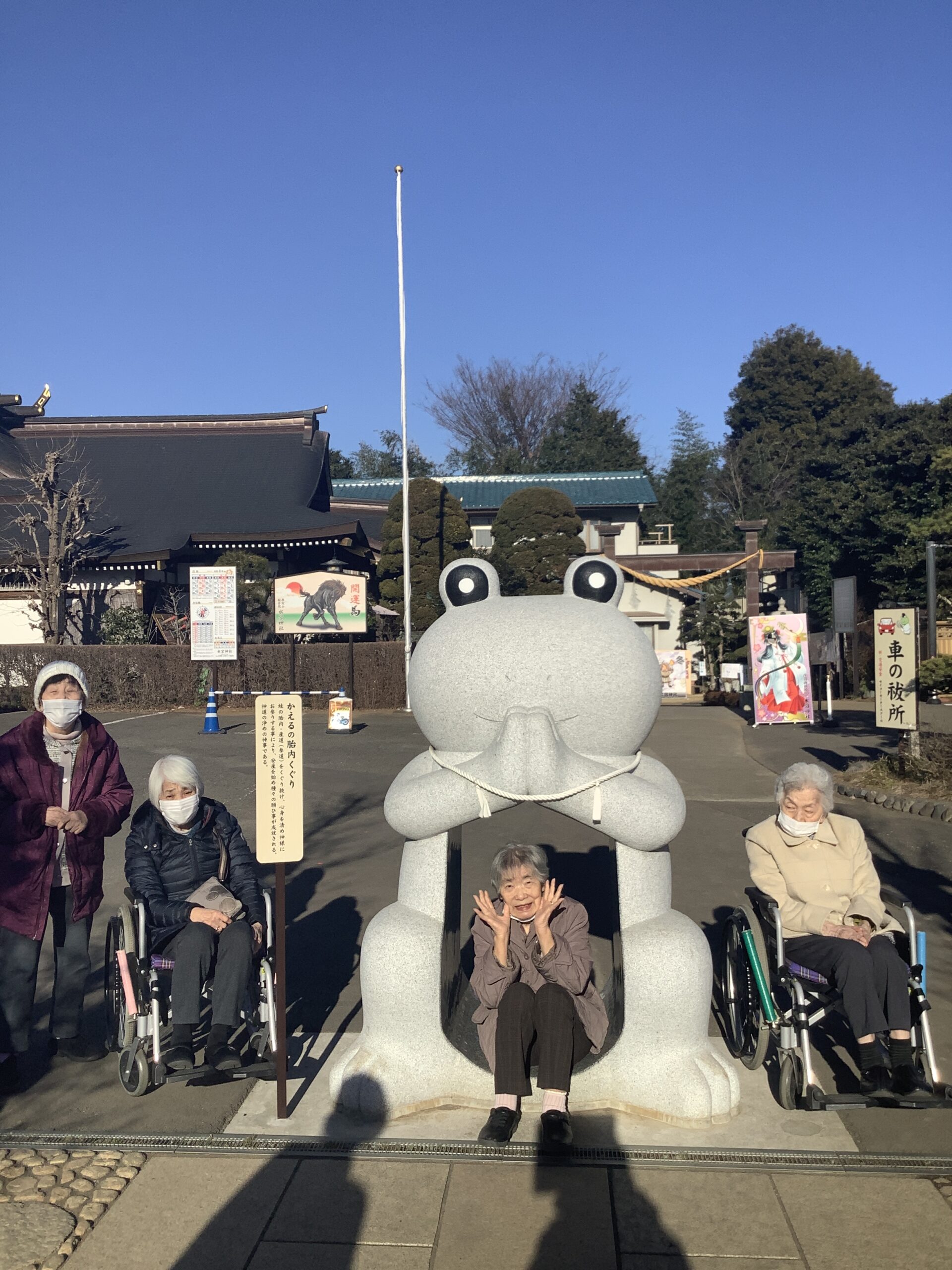 デイサービスセンターみずほ苑 初詣 2026.02.06 ☆デイサービス☆ 富士見市の水宮神社に初詣に行きました。 天候に恵まれ皆さま参拝を楽しまれていました。 参道には可愛いカエルの石像が沢山あり、出迎えてくれました♪ 今年も元気に過ごせますように。 新年会 前の記事 節分会 次の記事